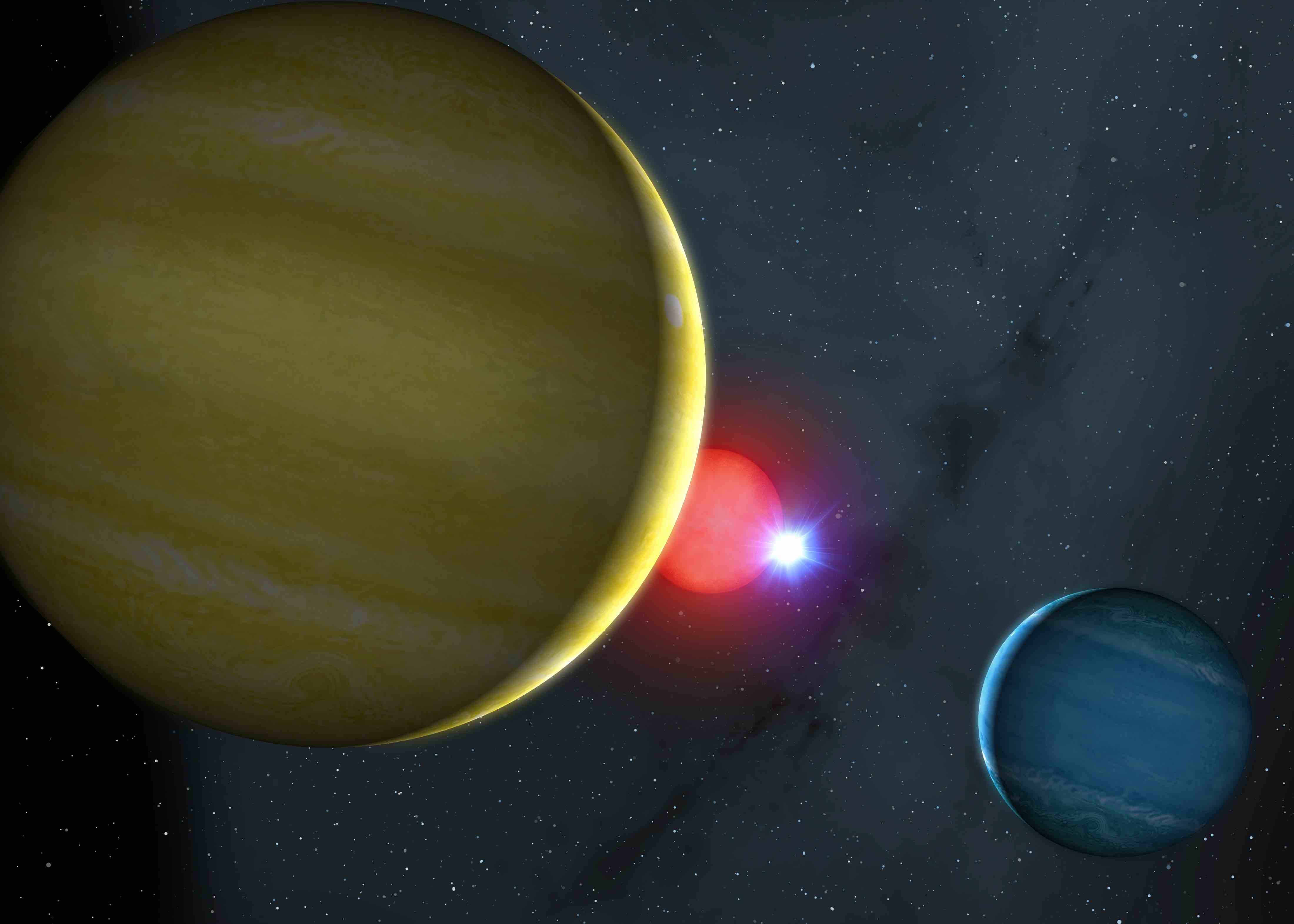 Top-left: Artist's impression showing the jet emanating from the black hole in V404 Cyg. The black hole is surrounded by an accretion disc and orbited by a companion star. Top-middle: Artist’s impression of the pulsar PSR J0348+0432 and its white dwarf companion. The pulsar is a neutron star and is currently the most massive known, with a mass twice that of the Sun. Top-right: Artist’s impression of the exotic binary star system AR Sco, which harbours the first known white-dwarf pulsar. Bottom-left: Artist's impression of the eclipsing cataclysmic variable SDSS 1035+0551, an accreting white-dwarf binary star with the first known brown-dwarf companion. Bottom-middle: Artist's impression of the close white-dwarf/red-dwarf binary star NN Ser - by timing the eclipses of the white dwarf, the existence of two gas-giant planets orbiting the binary was inferred. Bottom-right: Artist's impression of the disintegrating, rocky exoplanet KIC 1255b orbiting its host star. Click on the above images for further information on how high-speed observations helped astronomers to understand these systems.