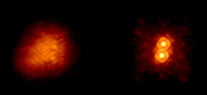 star IW Tau without (left) and with (right) adaptive optics on the 5.1