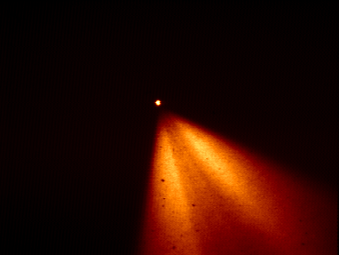 beacon is the point-like image at the centre; the plume to the right