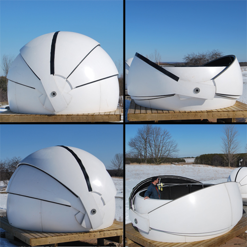 Bottom left: a mosaic showing how the two sets of shutters open on a smaller clamshell dome.