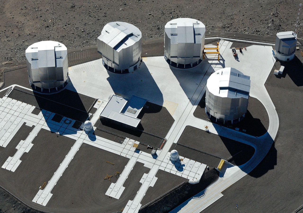 dome closed. Top right: the LT partially opened, exposing the telescope within.